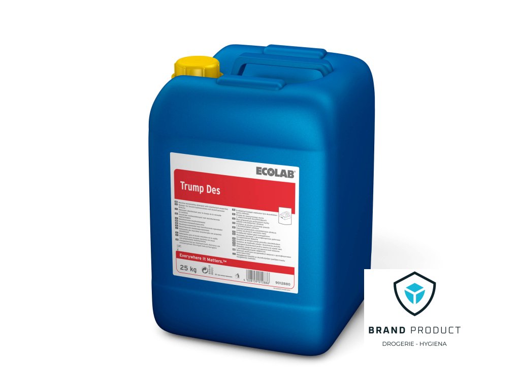 Trump DES je tekutý mycí přípravek s dezinfekčním a bělicím účinkem, určený pro průmyslové myčky nádobí. Přípravek je určen pro měkkou vodu.